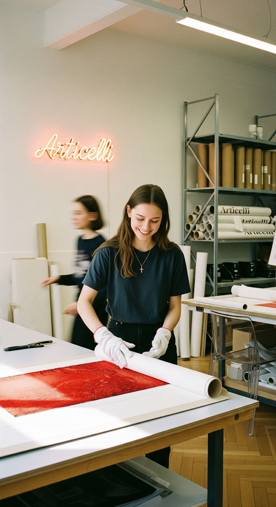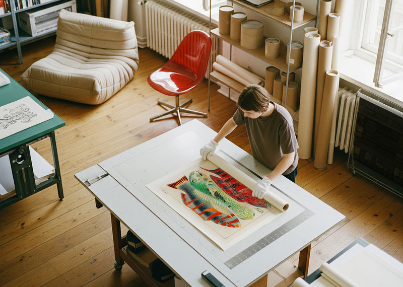 Deshalb stecken wir unser Herz in jeden Schritt des Druckprozesses, um sicherzustellen, dass jedes von uns hergestellte Werk dem höchsten künstlerischem Anspruch gerecht wird. Jeder Gicleé-Druck wird in unserem Berliner Drucklabor per Hand zugeschnitten und geprüft.