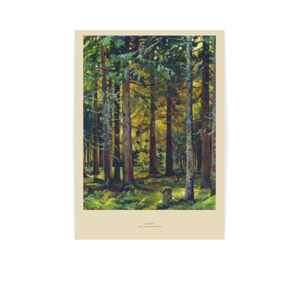 Iwan Iwanowitsch Schischkin, ein Meister der russischen Landschaftsmalerei, fängt in seinem Werk "Fichtenholz" die majestätische Ruhe und Erhabenheit der russischen Wälder ein. Die präzise Darstellung der Bäume, die sich in den Himmel erstrecken, und das Spiel von Licht und Schatten auf dem Waldboden zeugen von Schischkins akribischer Beobachtungsgabe und seiner tiefen Verbundenheit mit der Natur. Seine Gemälde sind nicht nur visuelle Darstellungen, sondern auch emotionale Erlebnisse, die den Betrachter in die unberührte Wildnis Russlands entführen.
